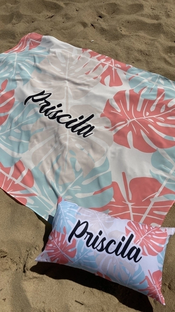 Este Kit contém : 1 Canga de Praia Personalizada + 1 Almofadinha Personalizada