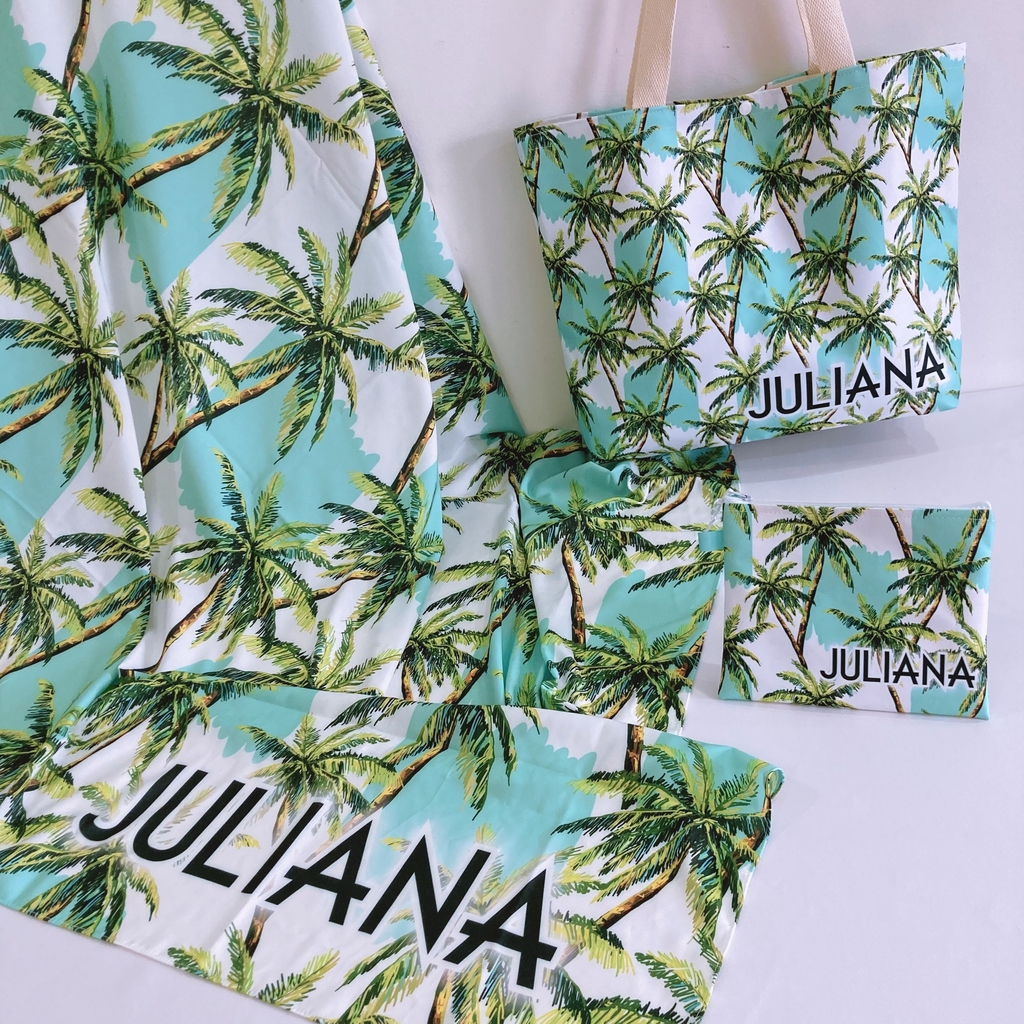 Este Kit contém : 1 Canga de Praia Personalizada +1 Bolsa Slim Personalizada fechamento botão de pressão ou zíper + 1 Necessaire Slim Personalizada