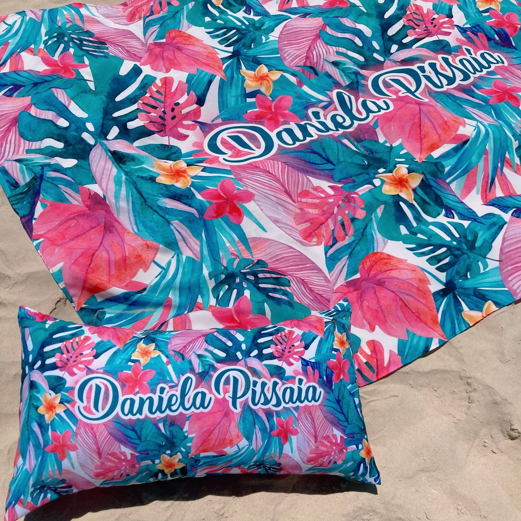 Este Kit contém : 1 Canga de Praia Personalizada + 1 Almofadinha Personalizada