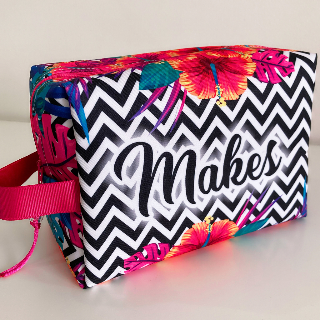 O zíper, fitas entre outros acabamentos da necessaire podem ter variação de cor conforme a disponibilidade de estoque, mas sempre respeitando as cores das estampas e o design do produto.