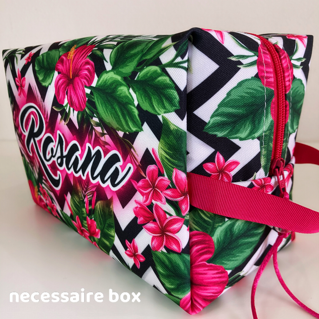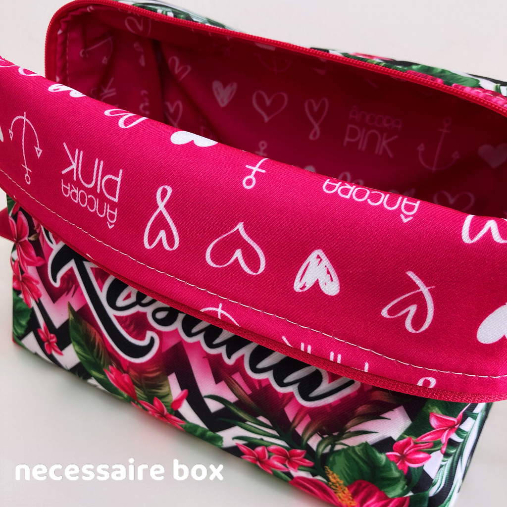 A Necessaire Box é confeccionada com tecido impermeável na parte externa, e forrada internamente com tecido 100% poliéster ❤