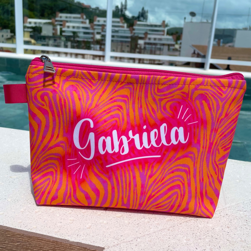 A Necessaire Slim é confeccionada com tecido impermeável na parte externa, e forrada internamente com tecido 100% poliéster ❤. Nós personalizamos para você com seu nome, seu nome e sobrenome, sua logo, o destino da sua viagem, enfim como você quiser! 😍