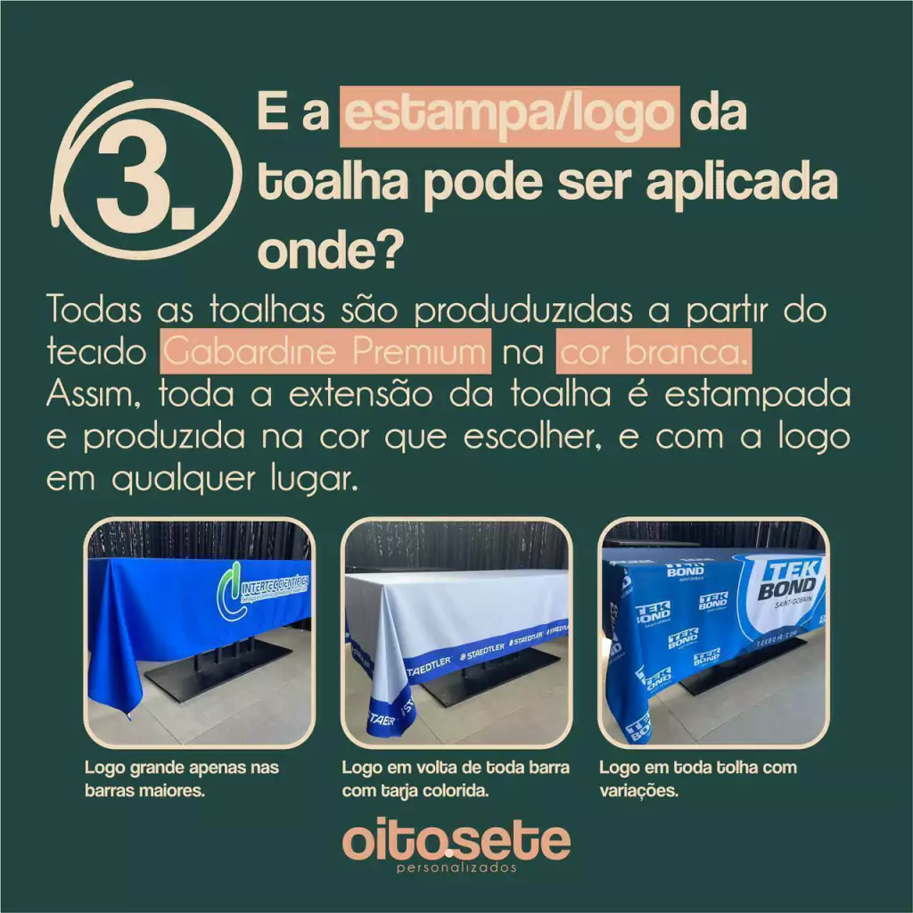 Personalizamos a toalha com a sua marca, garantindo que sua empresa se destaque em qualquer ocasião. Seja em eventos, feiras ou reuniões, sua identidade visual estará sempre em evidência. 🌟
